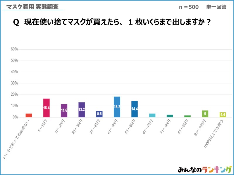 - Q3.使い捨てマスクが買えるとしたら、1枚あたりいくらまで出しますか?