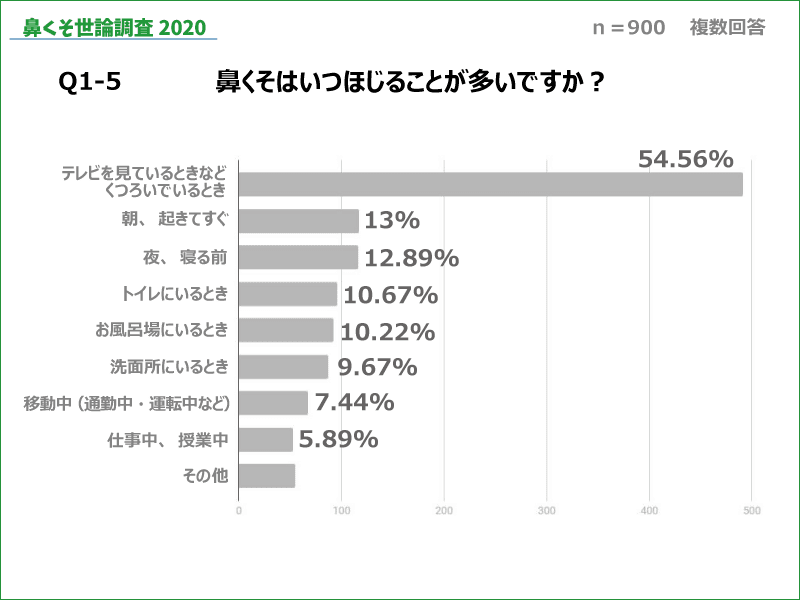 この質問では、日常的に鼻をほじるシーンをすべて回答してもらいました。
