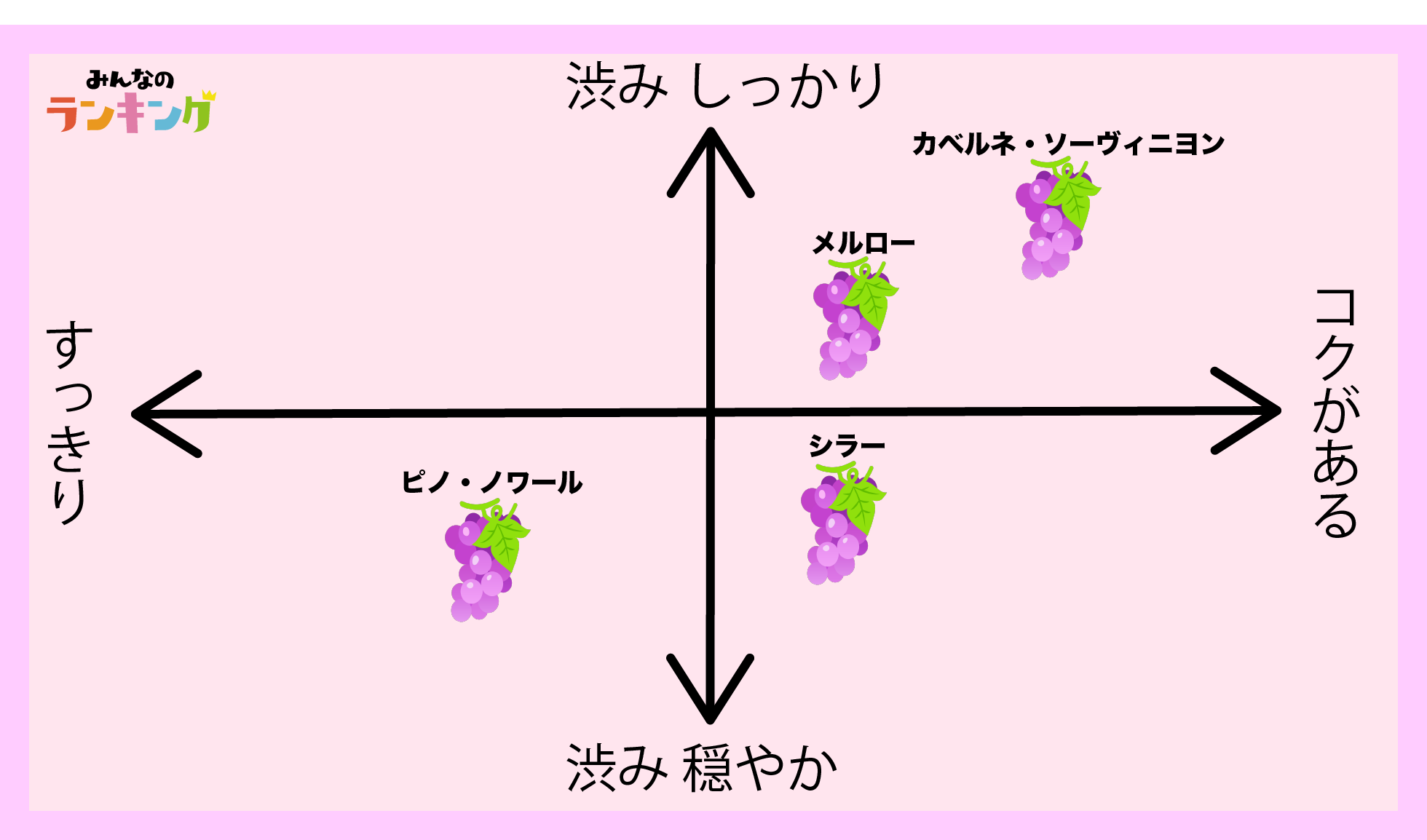 タンニンによる渋みもほぼないため、赤ワインよりもあっさりとした口当たりが楽しめます。