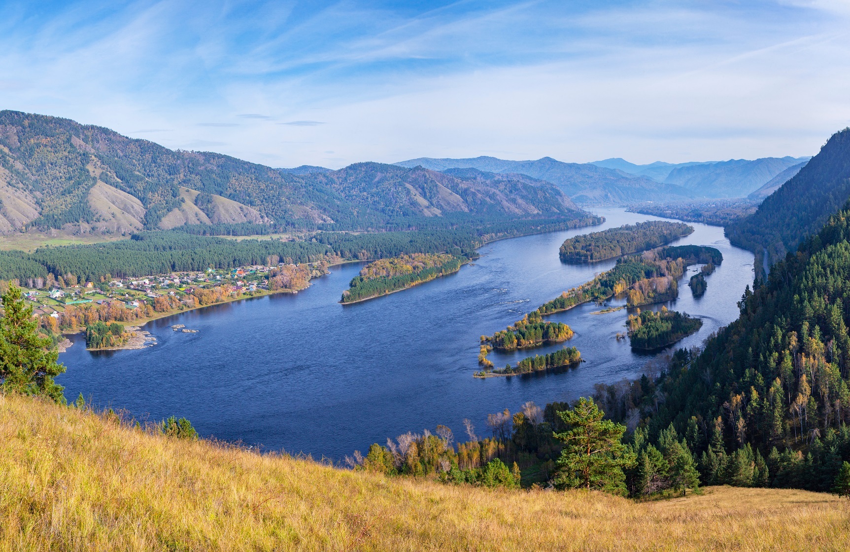 ロシアのシベリア中央部を流れるエニセイ川。5,550kmというのは、バイカル湖やセレンガ川に連なる水系全体を含んだ場合の長さです。