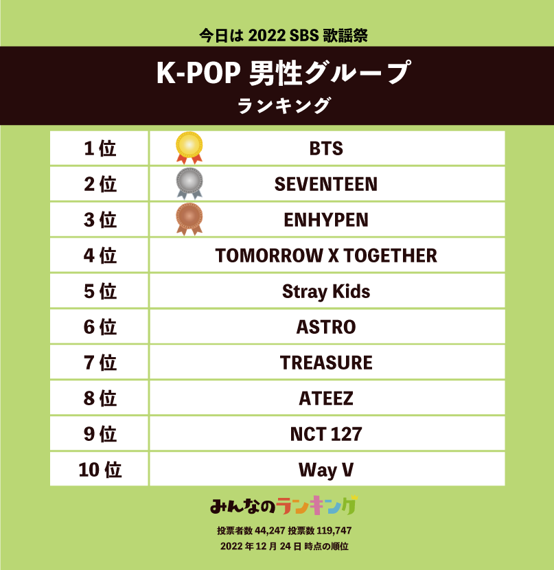 【#SBS歌謡大典開催】K-POP男性グループランキング