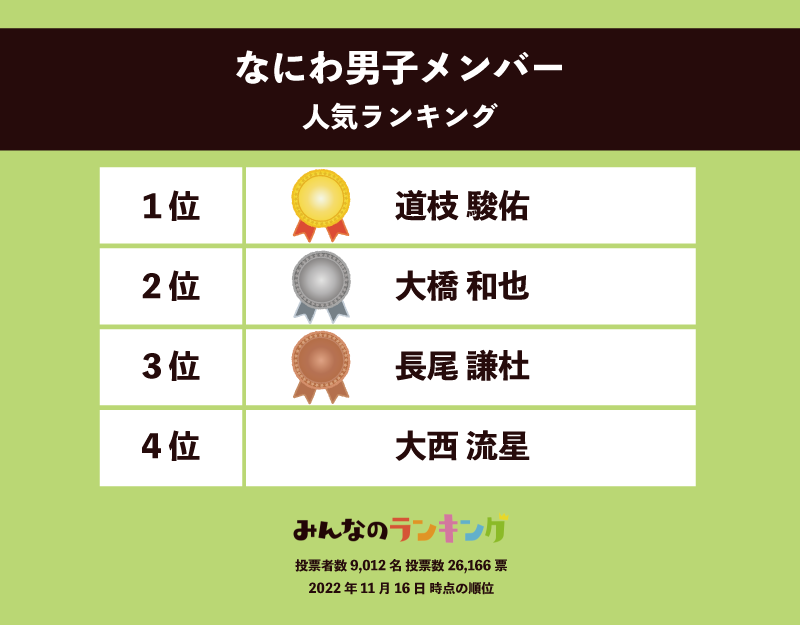 かわいい王道アイドルのなにわ男子。みんなのランキングで行ったメンバーの人気ランキングはこちら。