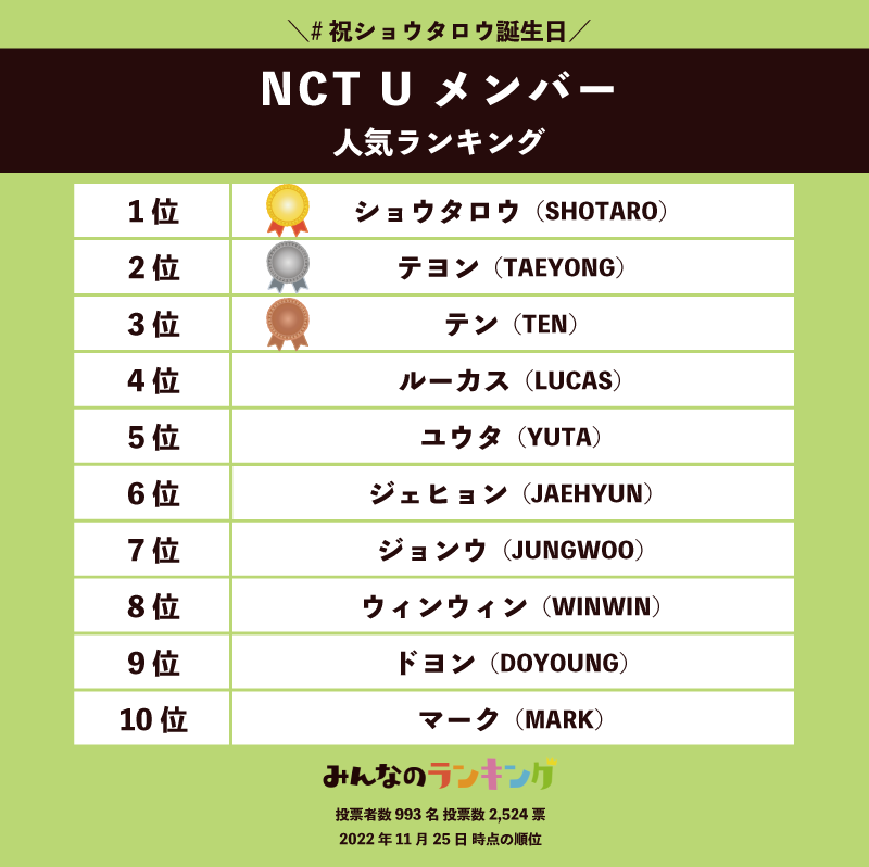 【#祝ショウタロウ誕生日_夢は叶う】NCT Uメンバーランキング