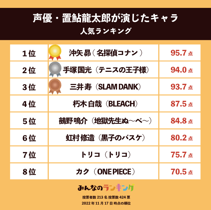 【#置鮎龍太郎生誕祭2022】声優・置鮎龍太郎が演じたキャラランキング