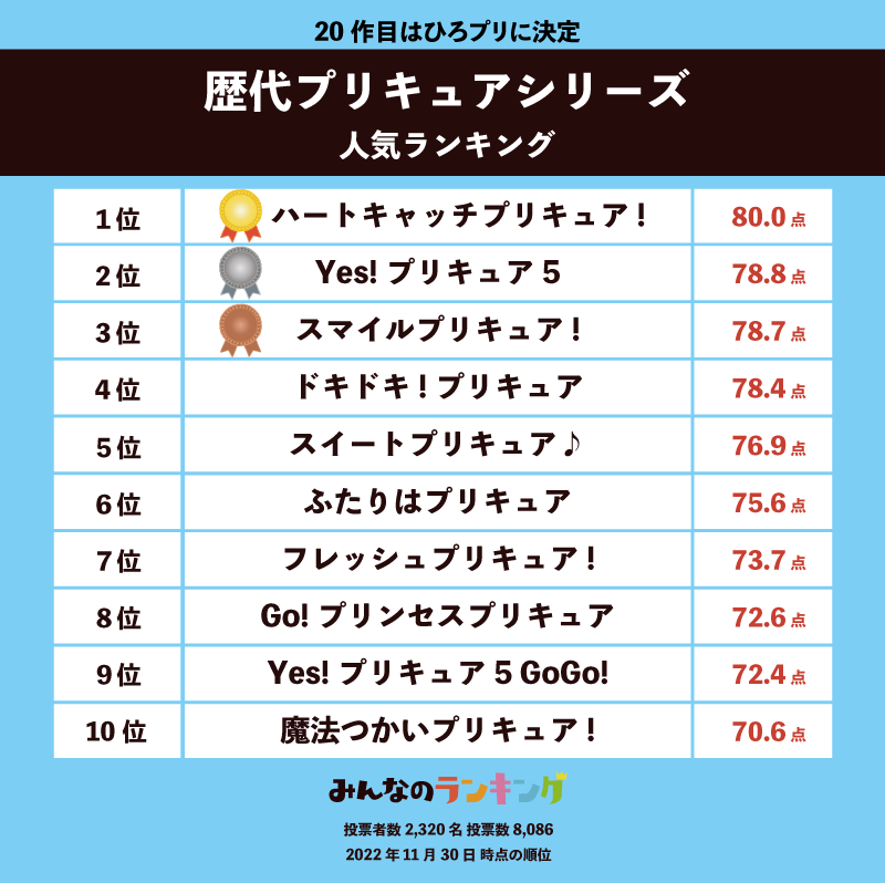 【20作目はひろプリに決定】歴代プリキュアシリーズランキング