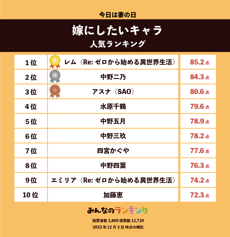 【今日は妻の日】妻・嫁にしたいアニメキャラランキング