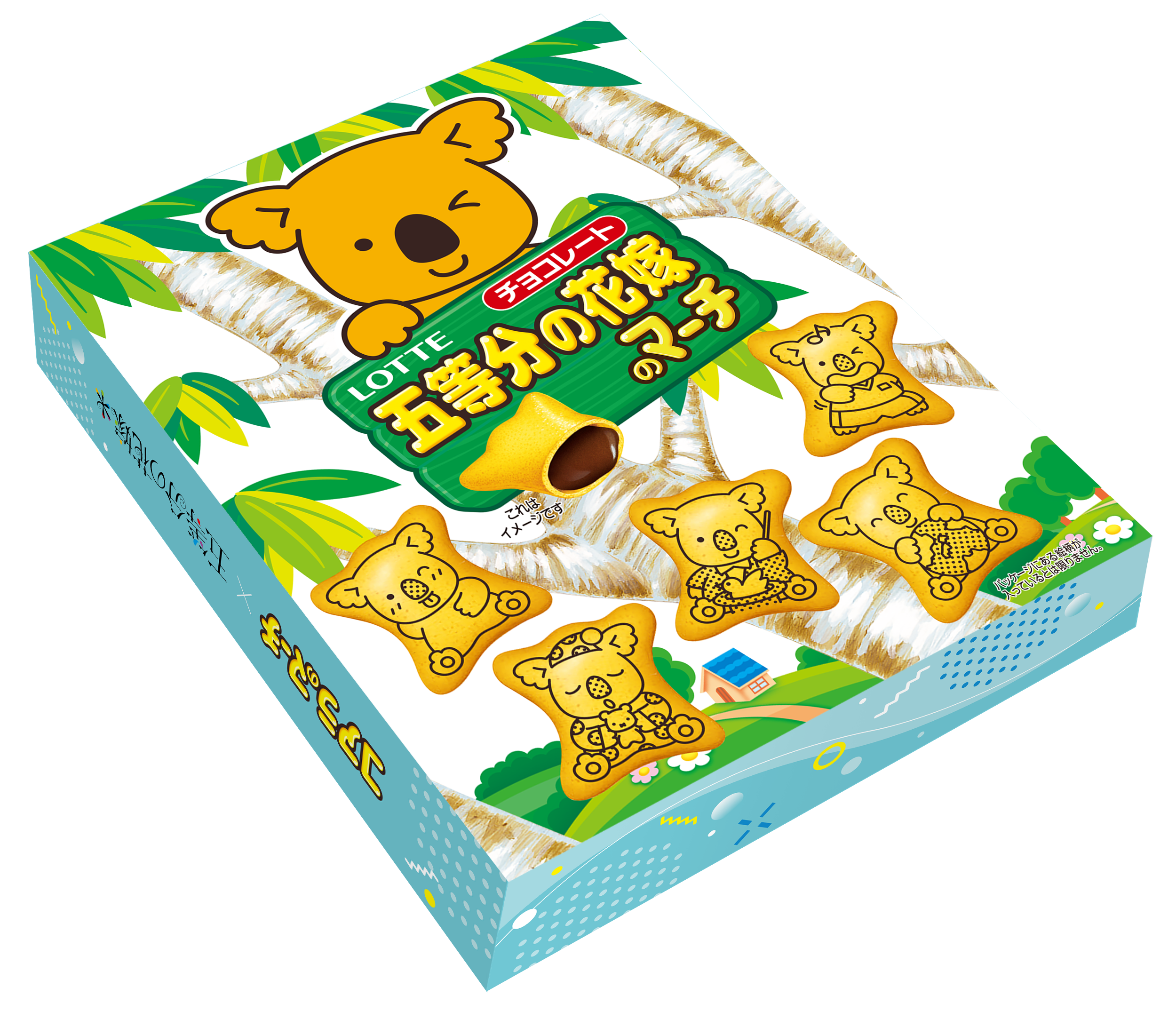 1セットには10箱が含まれており、各箱には「コアラのマーチ ミニパック」が2袋ずつ封入されています。オリジナルBOXのデザインにもこだわり、表面と裏面それぞれに特別なアートワークが施されています。
