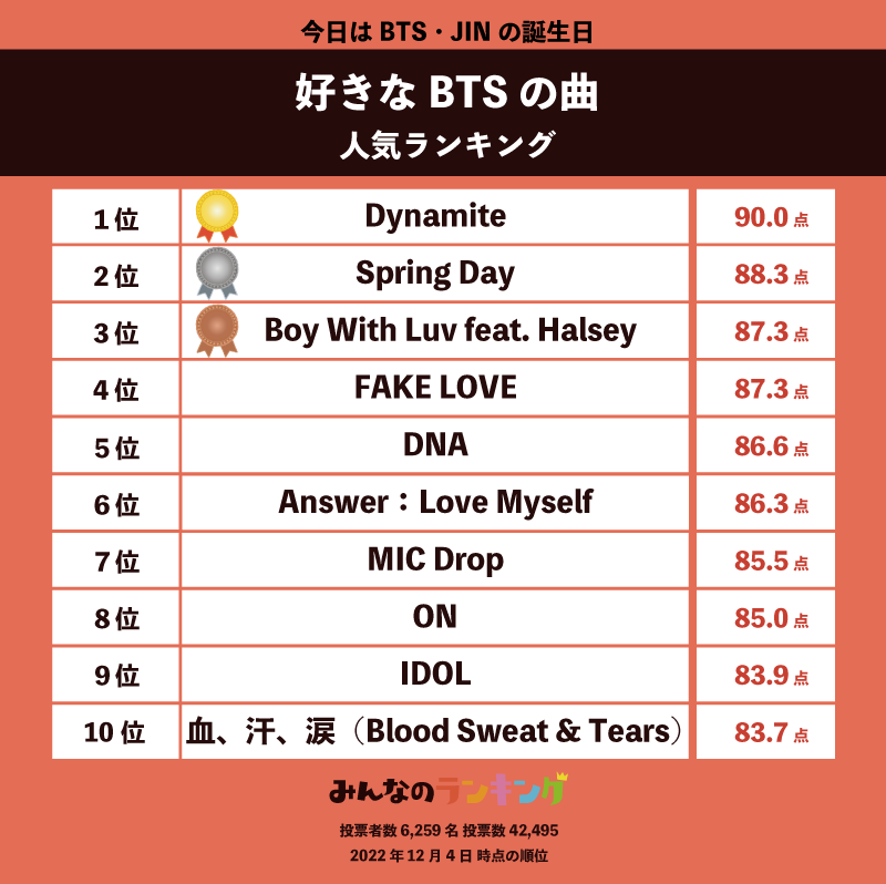 【今日はBTS・JINの誕生日】好きなBTSの曲ランキング