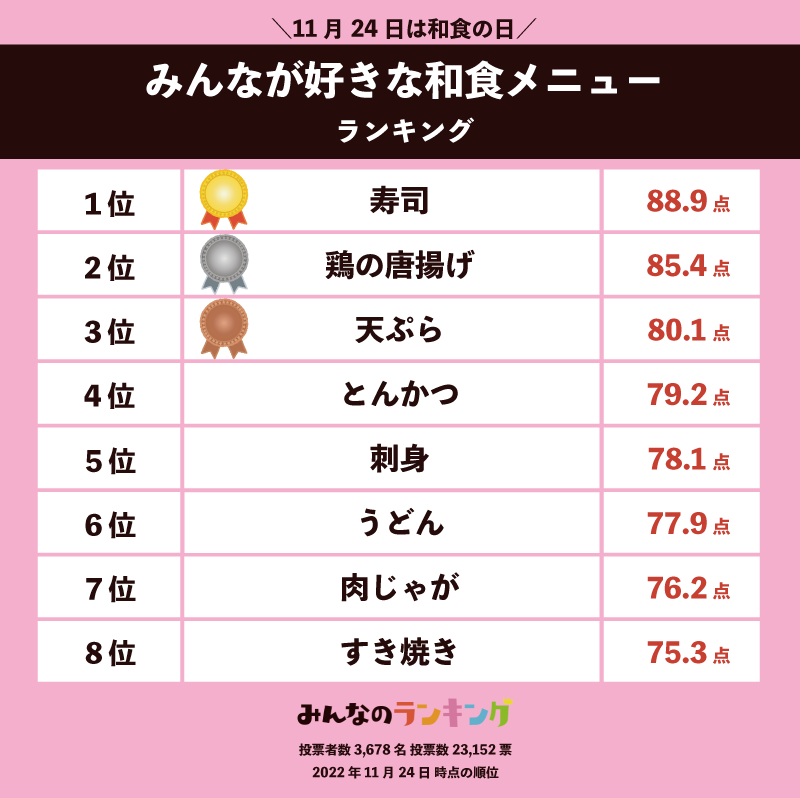 【本日は和食の日】みんなが好きな和食メニューランキング