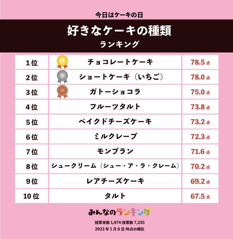 あなたの好きなケーキは何位?ランキングの続きはこちら