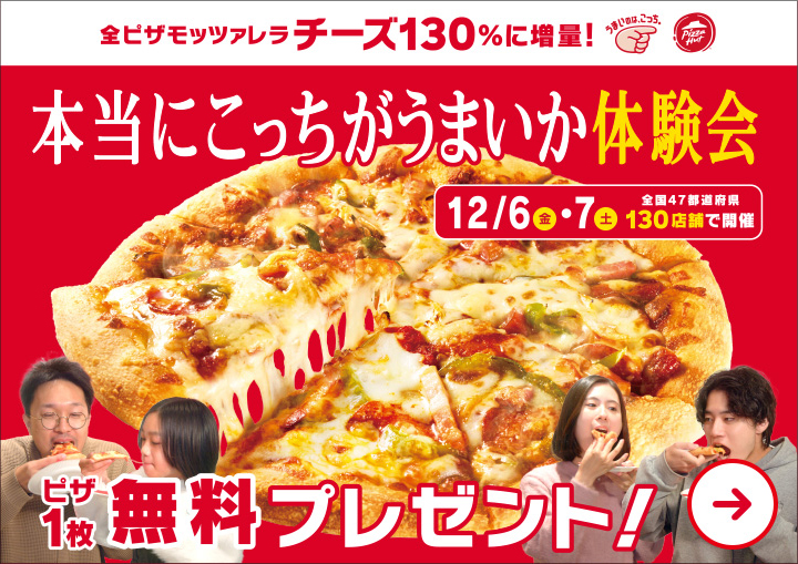 東日本・西日本で実施された判定会では、約260名の参加者がチーズ増量前後のピザを食べ比べ。その結果、86%という圧倒的多数が新しいレシピを支持。この様子は特別なWEBムービーとして12月2日に公開されます。