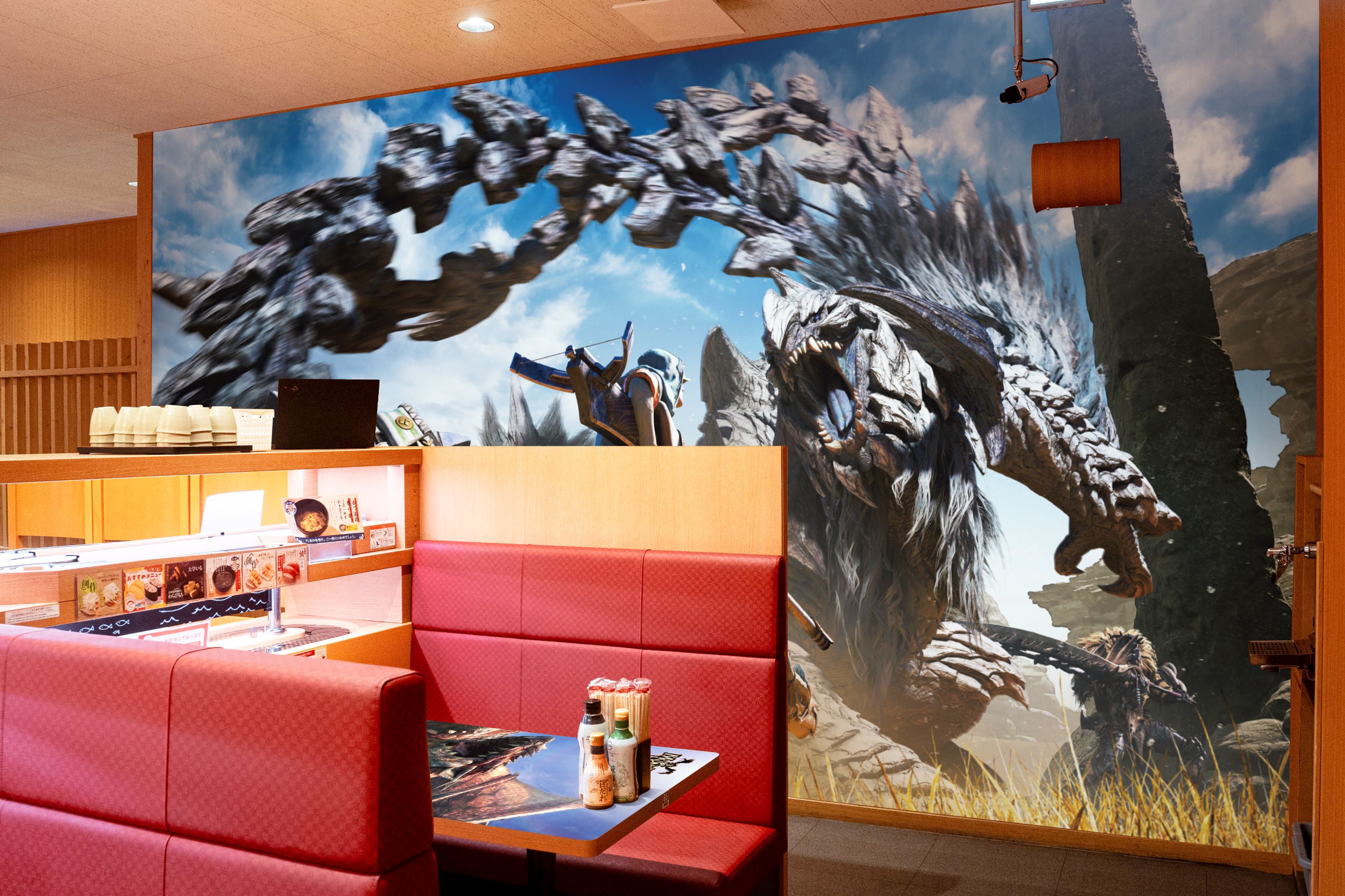 - 特別メニュー: 「モンハン 肉の3種盛」「モンハン まぐろすし」「モンハン!骨付きソーセージ」の3種類