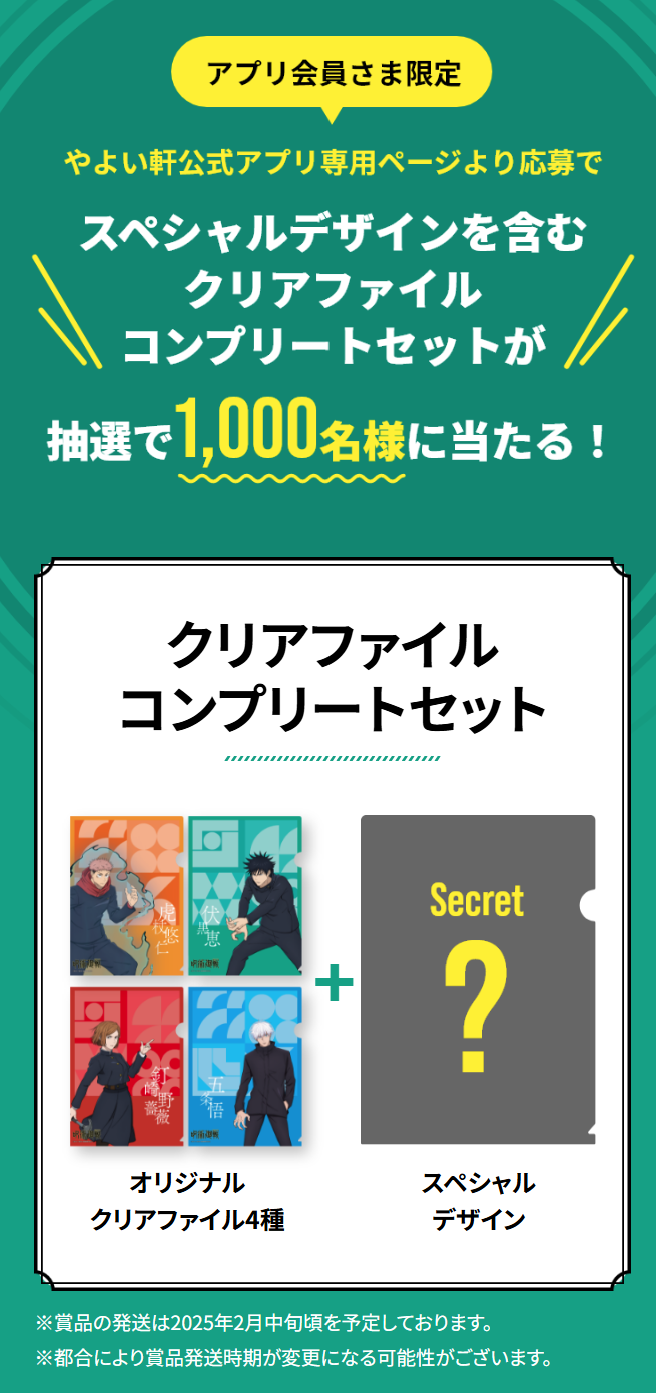 - 追加企画: アプリ会員限定で抽選1,000名にクリアファイルコンプリートセットをプレゼント