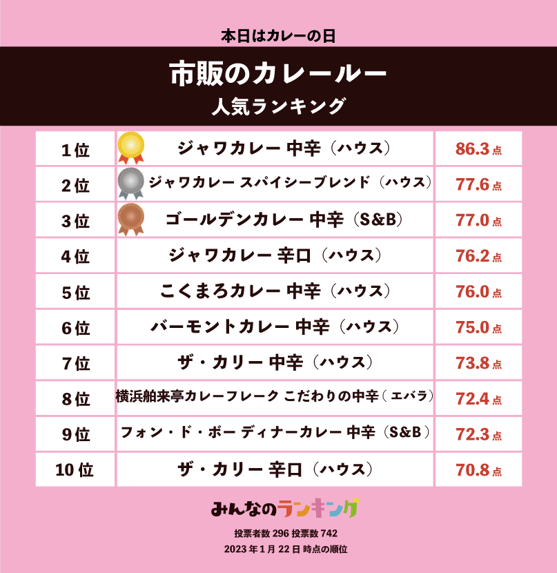 【今日はカレーの日】市販のカレールー人気ランキング