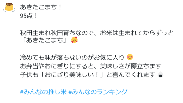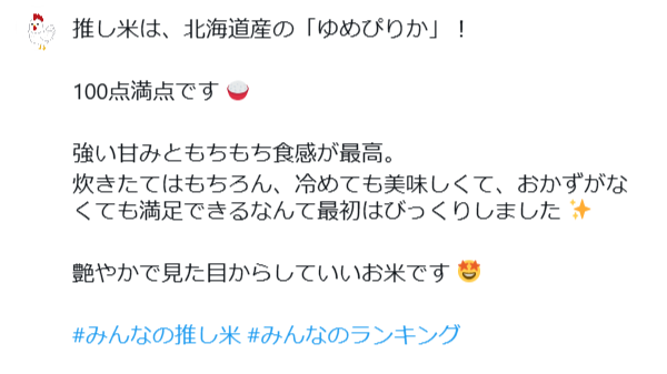 指定ハッシュタグ「#みんなの推し米」と「#みんなのランキング」の両方を付けて、ステップ2の内容をポスト!