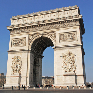 正式名はエトワール凱旋門ですが、単に凱旋門と言えば多くの場合この建物を指すほど、圧倒的な認知度を誇るパリのシンボルとなっていて威風堂々的な建物。